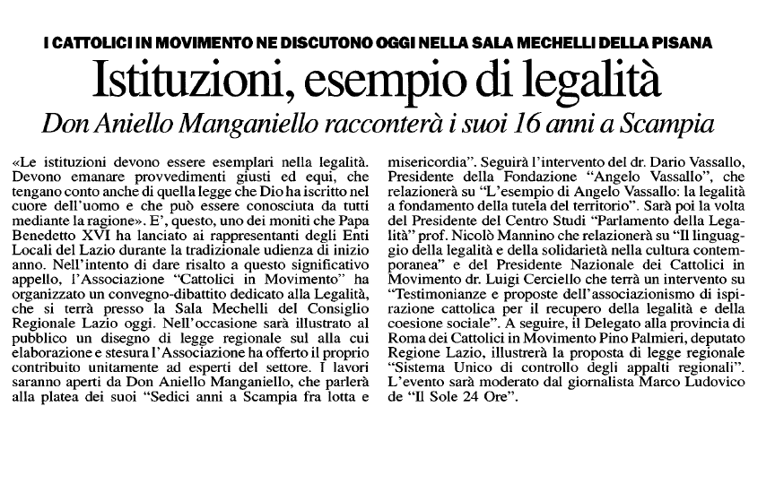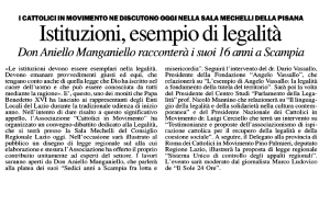 Articolo su Ciociaria Oggi per l’evento “L’esempio nella legalità. Testimonianze e proposte per una società più sana e credibile”