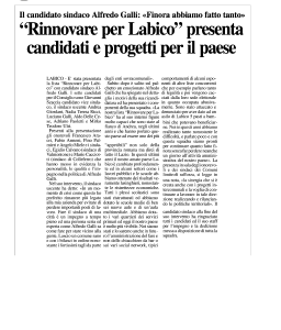 Articolo su Ciociaria Oggi per le elezioni di Labico.