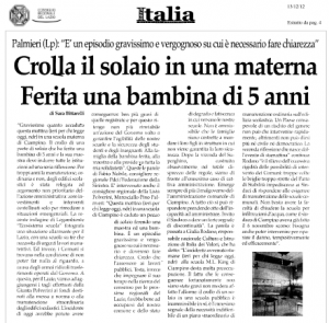 Palmieri: “Crolla il solaio in una materna, ferita una bimba di 5 anni”
