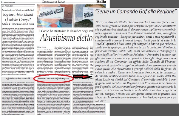 Italia Sera, Palmieri (Lista Storace): “Serve un Comando GDF alla Regione”.